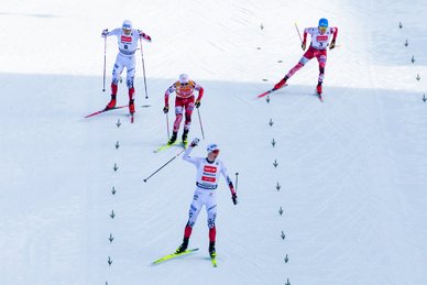 Early on, a strong lead group formed featuring Jens Luraas Oftebro (4th after jumping, +17 seconds) and overall World Cup leader Johannes Lamparter of Austria (6th after jumping, +26 seconds). In the second lap, Julian Schmid and Johannes Rydzek temporarily closed the gap to the front, while local favourite Richard Stenzel had to let go early. In the third lap, the Norwegians increased the pace. The Oftebro brothers broke away decisively together with Lamparter and Stefan Rettenegger. The Germans paid the price for their earlier comeback efforts and were unable to follow the accelerations. In the end, Jens Luraas Oftebro was the first to turn onto the finishing straight. Currently the strongest cross-country skier among the Nordic combined athletes, he did not let victory slip away. In a thrilling race, he relegated Lamparter to second place (+1.7 sec) and his brother Einar Luraas Oftebro (NOR) to third (+1.9). Stefan Rettenegger (AUT) narrowly missed out on the podium, finishing fourth (+3.1).